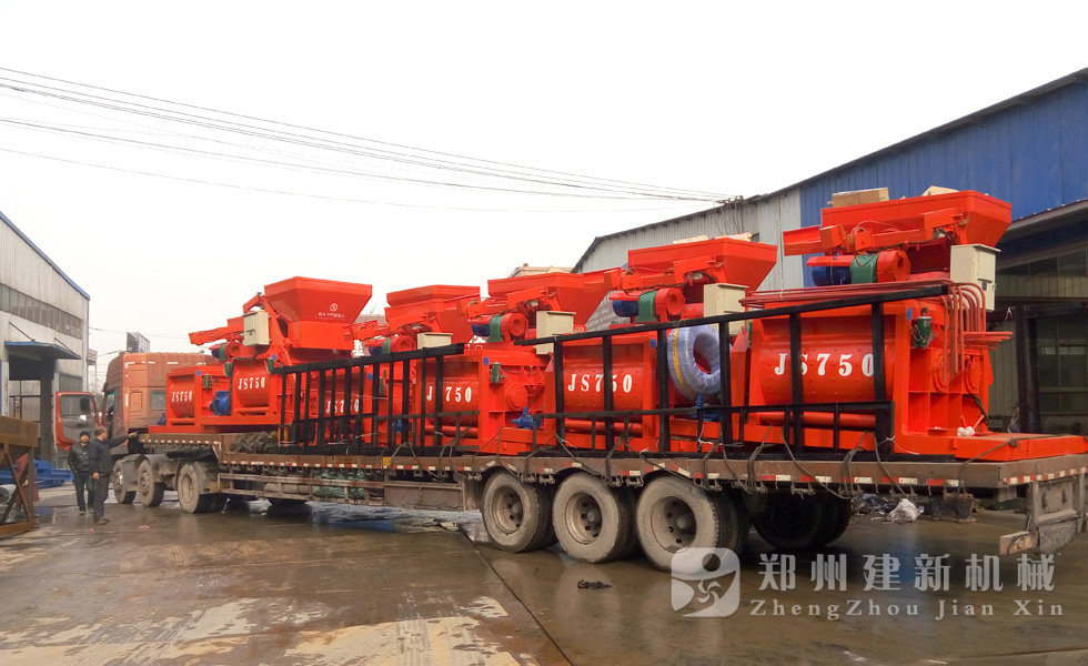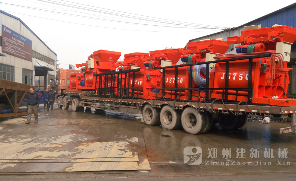 2015年12月1日,6臺JS750強制式混凝土攪拌機在鄭州建新機械廠家完成裝車,發(fā)往河南周口。