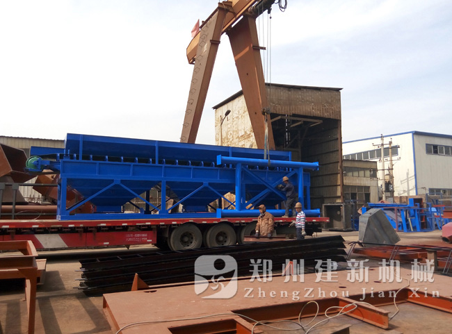 鄭州建新機(jī)械制造有限公司貨場(chǎng)上,一臺(tái)PLD1600三倉(cāng)砂石配料機(jī)正在做著最后的檢驗(yàn)工作,準(zhǔn)備發(fā)貨。據(jù)了解,這臺(tái)PLD1600砂石配料機(jī)與前兩天發(fā)出的JS1000混凝土攪拌機(jī)是同一批設(shè)備,為一套HZS60混凝土攪拌站。